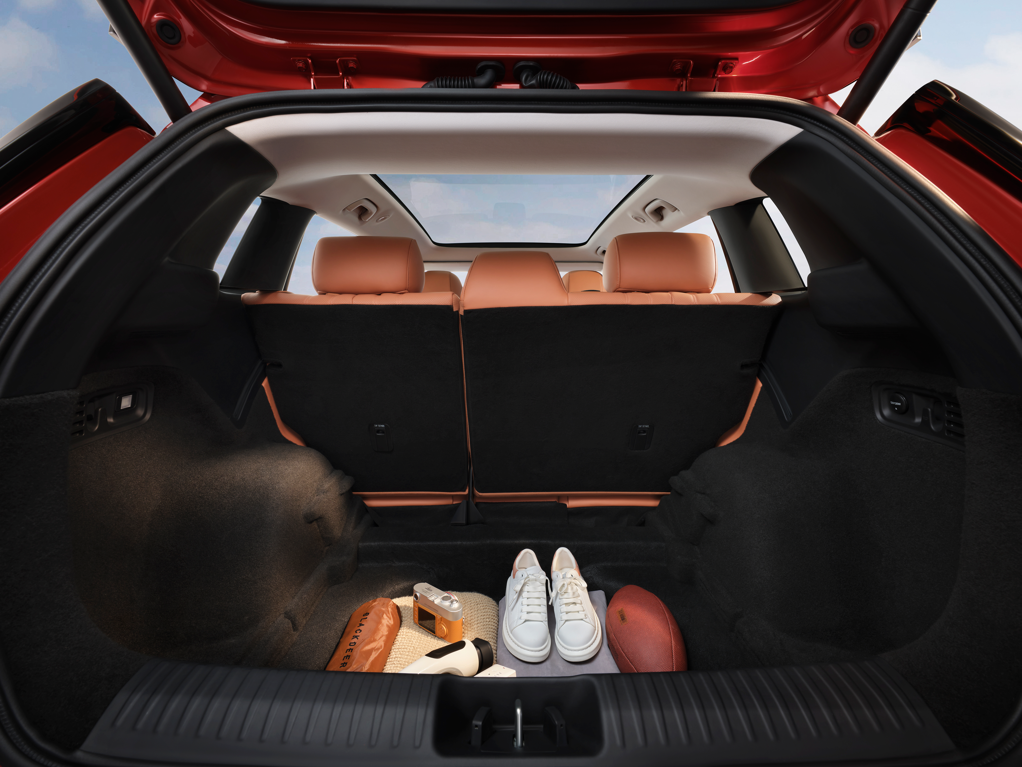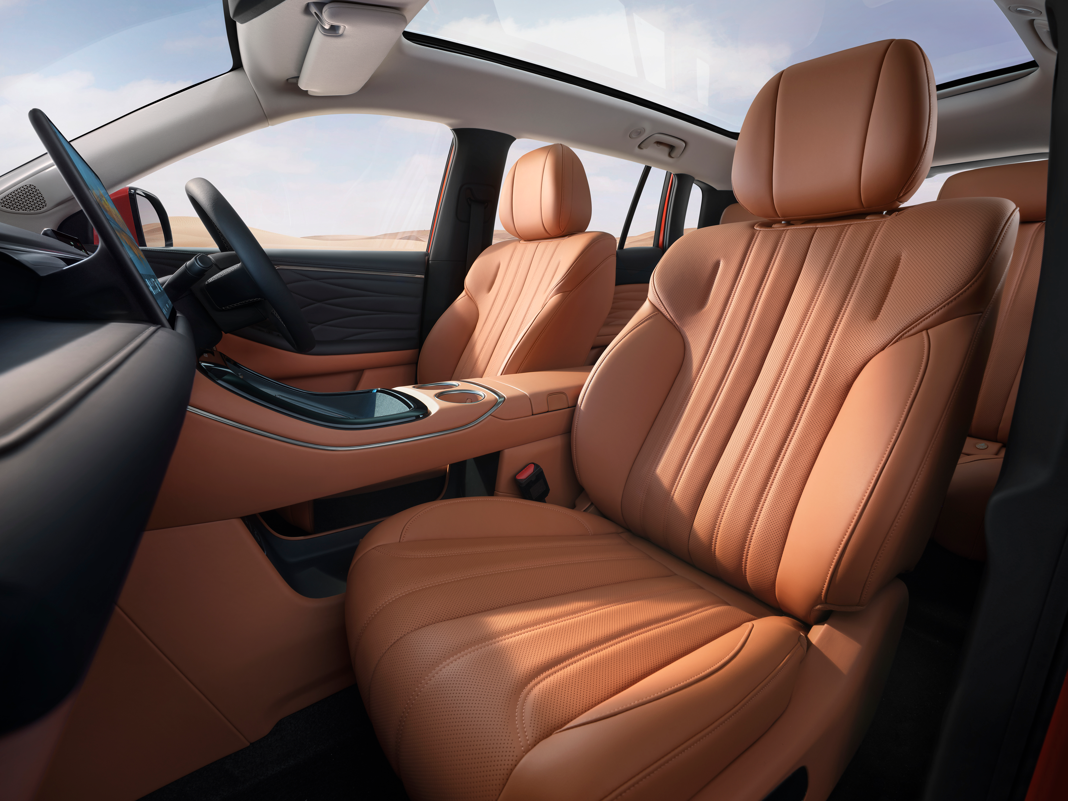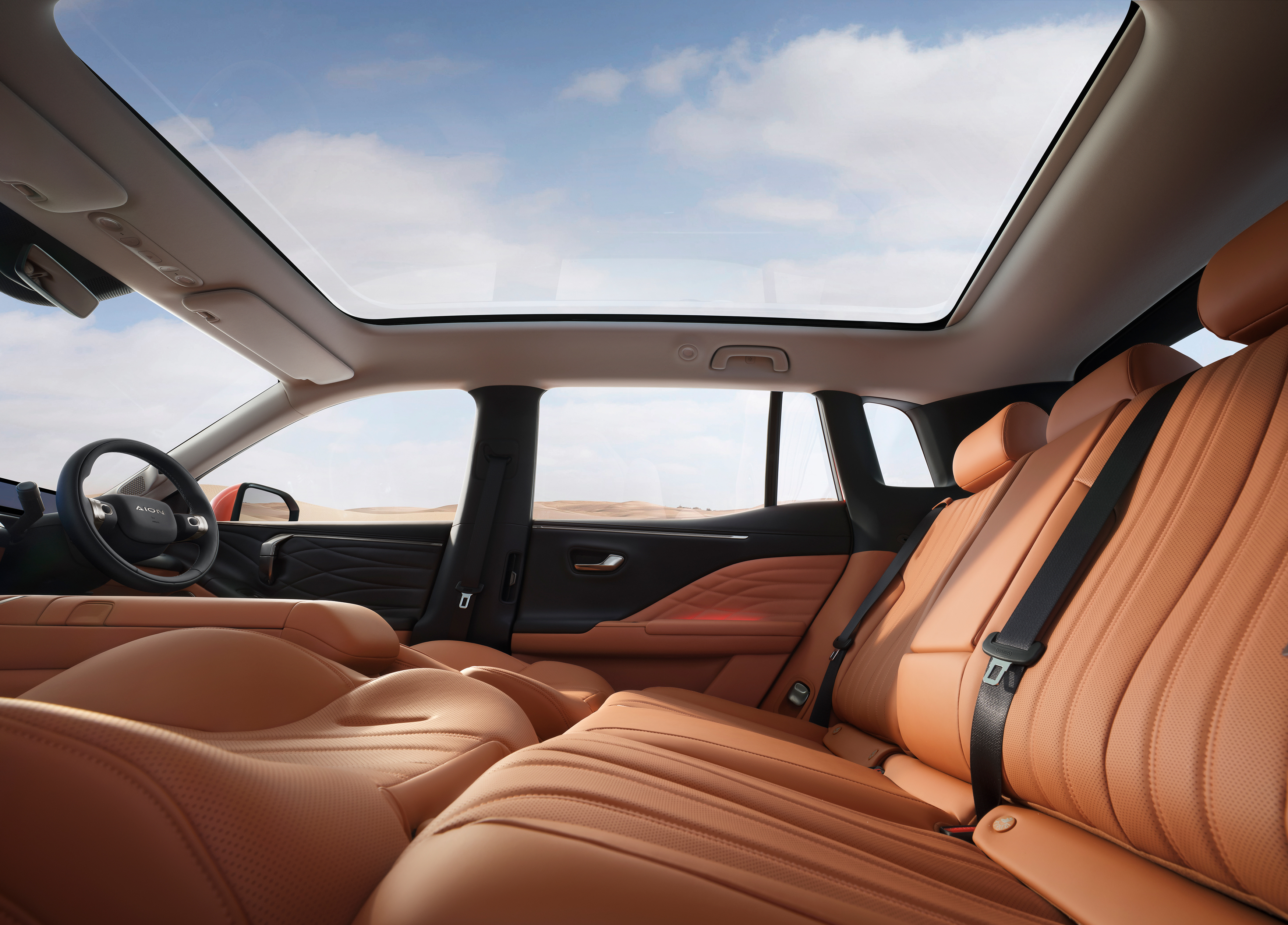 AION V oferuje wyjątkowo dużo miejsca oraz możliwość pełnego złożenia foteli, dzięki czemu wnętrze można szybko przekształcić w strefę relaksu lub noclegu.